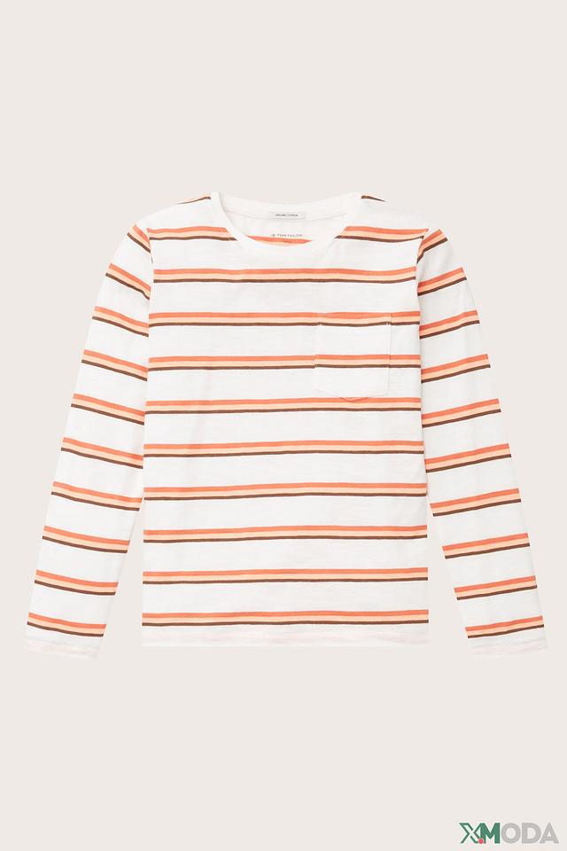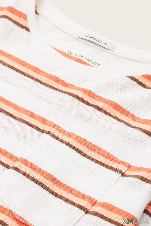 Эта стильная футболка от Tom Tailor станет отличным дополнением к гардеробу вашего мальчика. Футболка выполнена в классическом дизайне с горизонтальными полосами оранжевого, коричневого и белого цветов.
