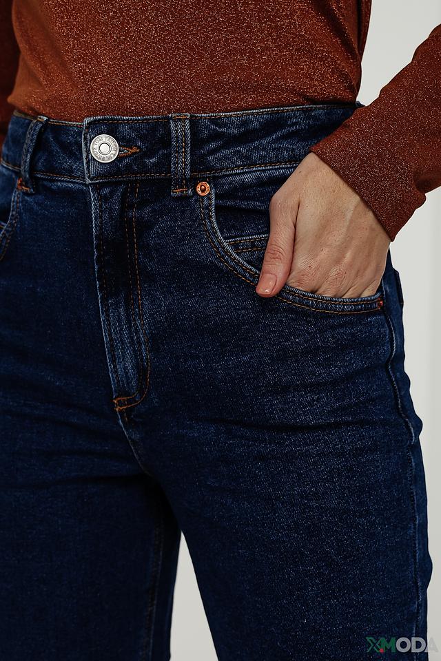 Джинсы имеют высокую посадку, подчеркивающую талию, и укороченный прямой крой, который визуально удлиняет ноги. Плотный деним обеспечивает долговечность и комфорт при носке, а небольшое добавление эластана делает джинсы более эластичными и удобными.
