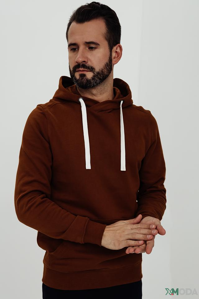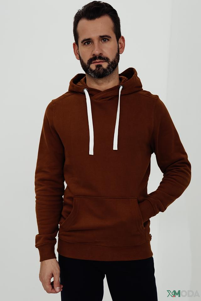 Толстовка выполнена из 100% хлопка, что делает ее приятной на ощупь и позволяет коже дышать. Коричневый цвет придает образу сдержанность и универсальность, позволяя легко сочетать толстовку с другими элементами гардероба.