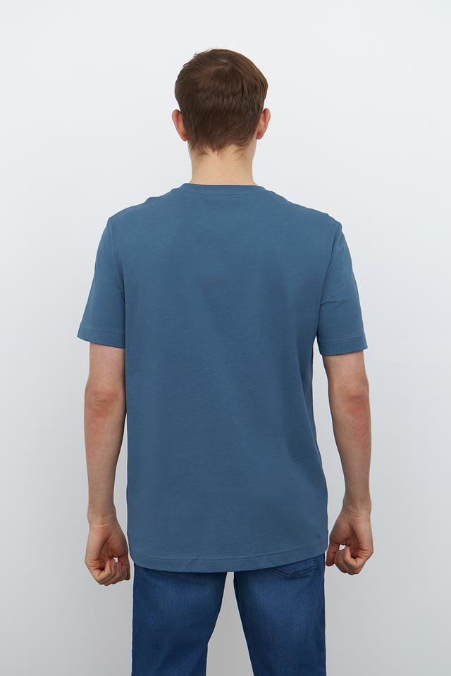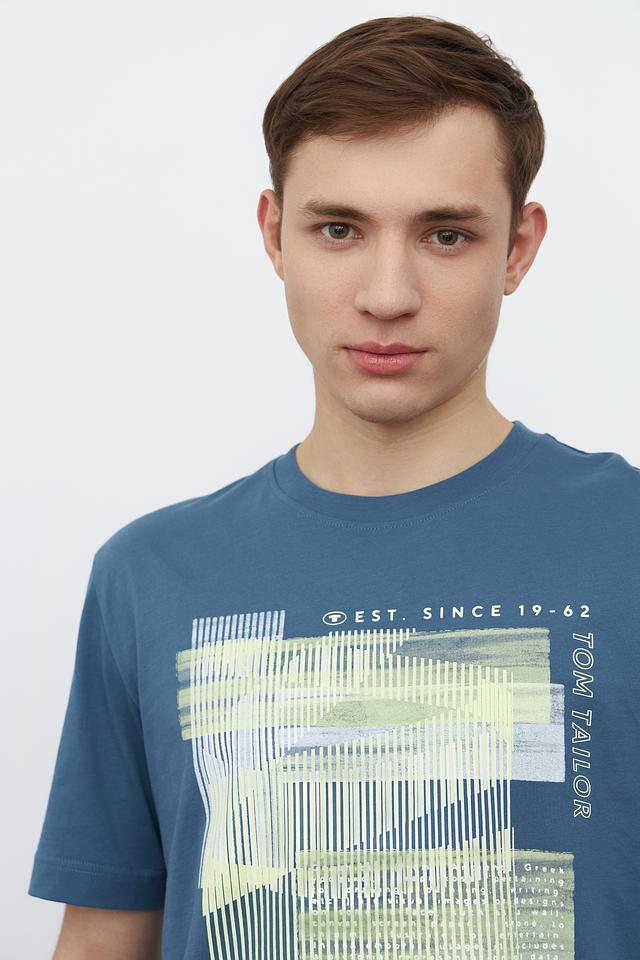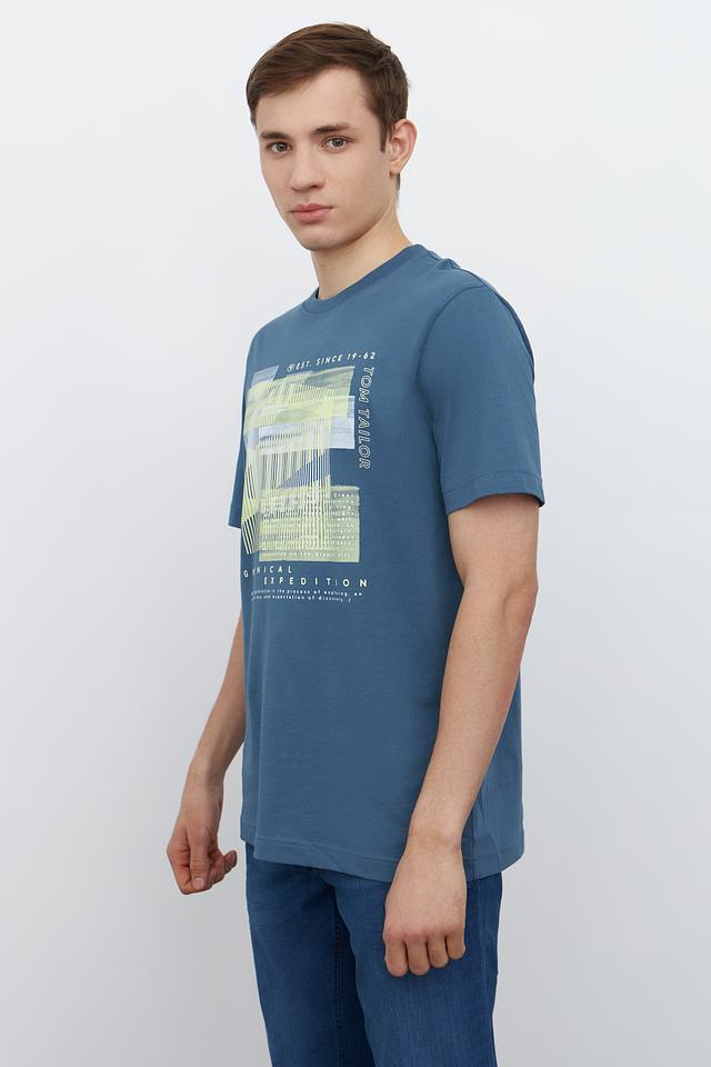 Мужская футболка Tom Tailor синего цвета с оригинальным графичным принтом. Изготовлена из 100% хлопка, обеспечивающего комфорт и воздухопроницаемость. Состав: хлопок 100%