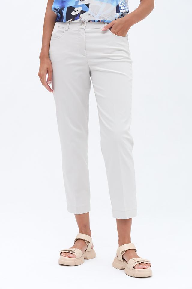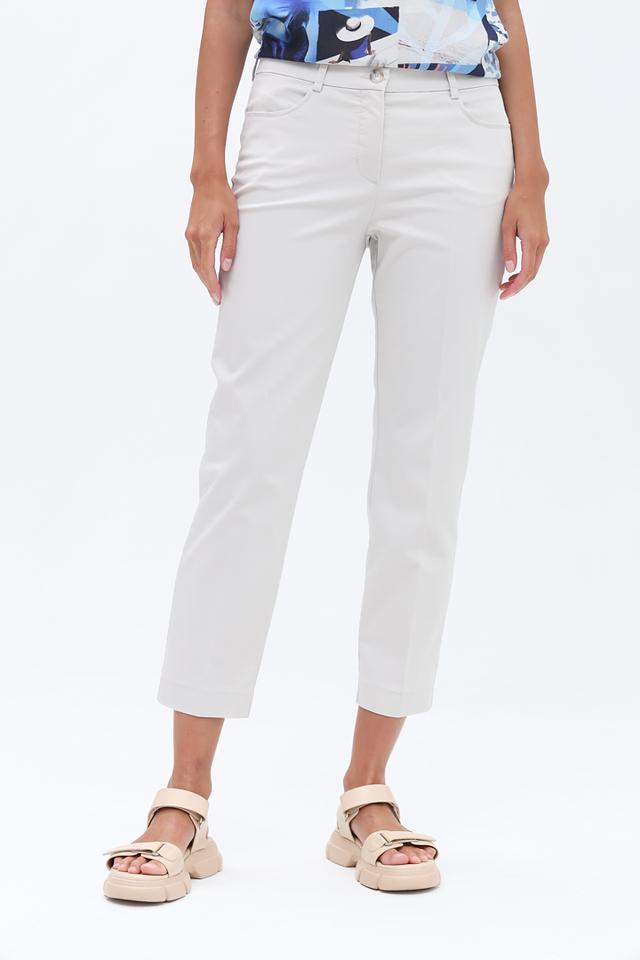 Брюки имеют прямой крой и укороченную длину, что делает их идеальными для создания модных образов в тёплое время года. Классическая посадка на талии и удобный пояс обеспечивают комфортную посадку по фигуре. Материал – сочетание хлопка, полиэстера и эластана – приятен к телу, хорошо держит форму и обеспечивает свободу движений.