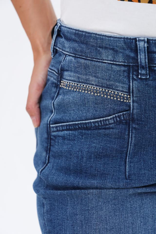 Джинсы имеют завышенную талию и прямой крой, что обеспечивает комфортную посадку и подчеркивает достоинства фигуры. Ткань состоит из 98% хлопка и 2% эластана, что гарантирует мягкость, удобство и небольшую эластичность.