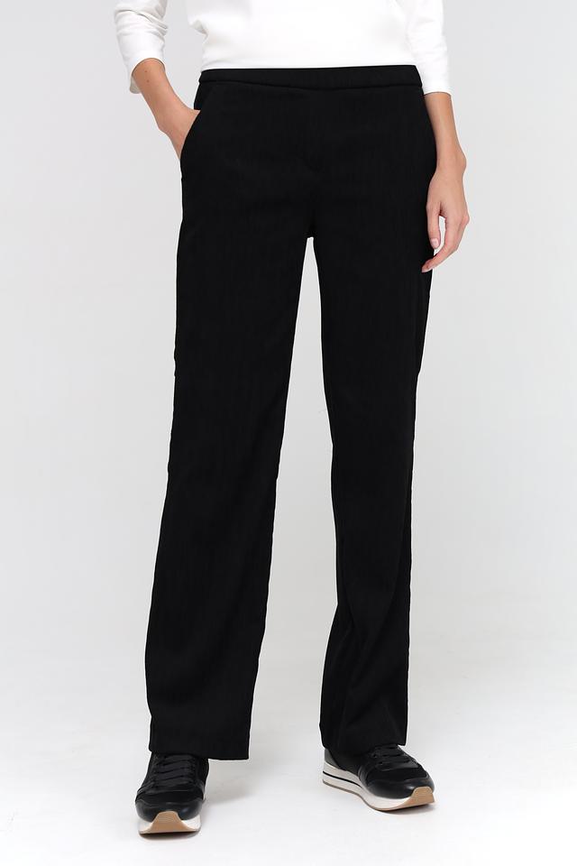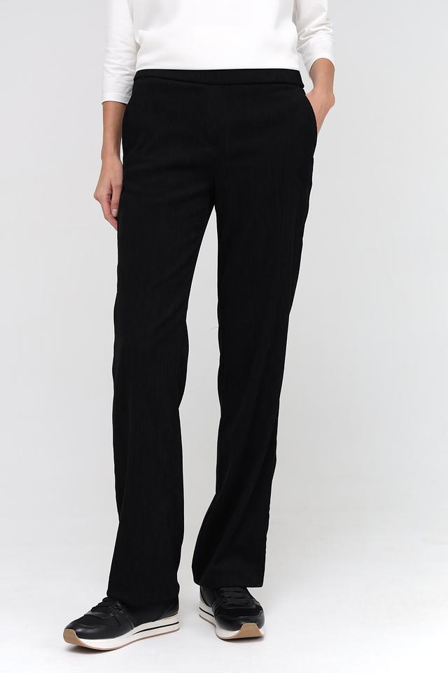 Брюки имеют прямой крой и стандартную посадку по фигуре. Эластичный пояс обеспечивает удобную и надежную фиксацию. Ткань, состоящая из 97% полиэстера и 3% эластана, приятна на ощупь, хорошо держит форму и практически не мнется.