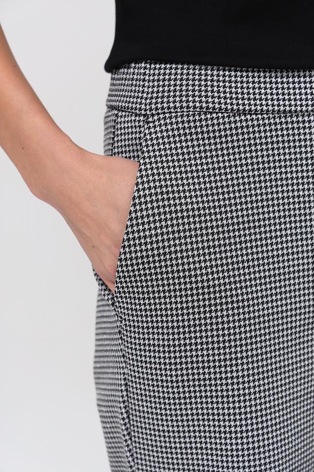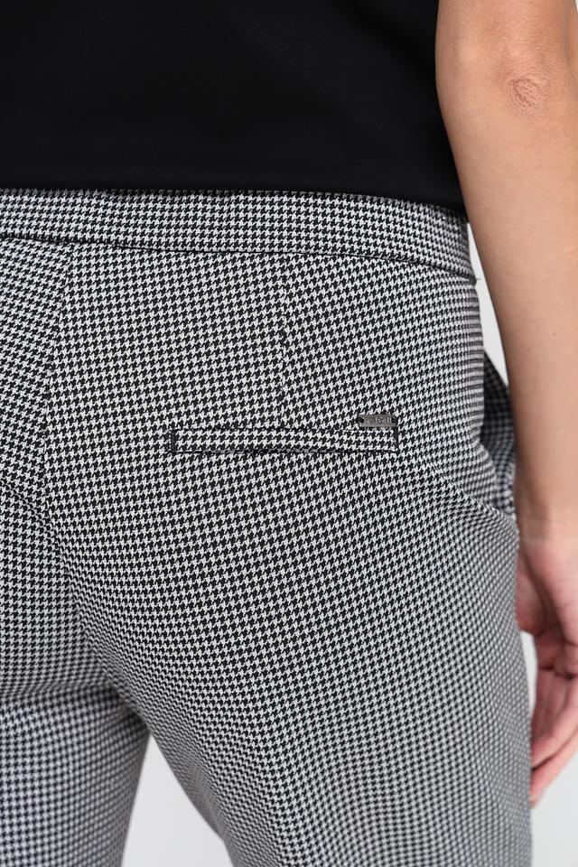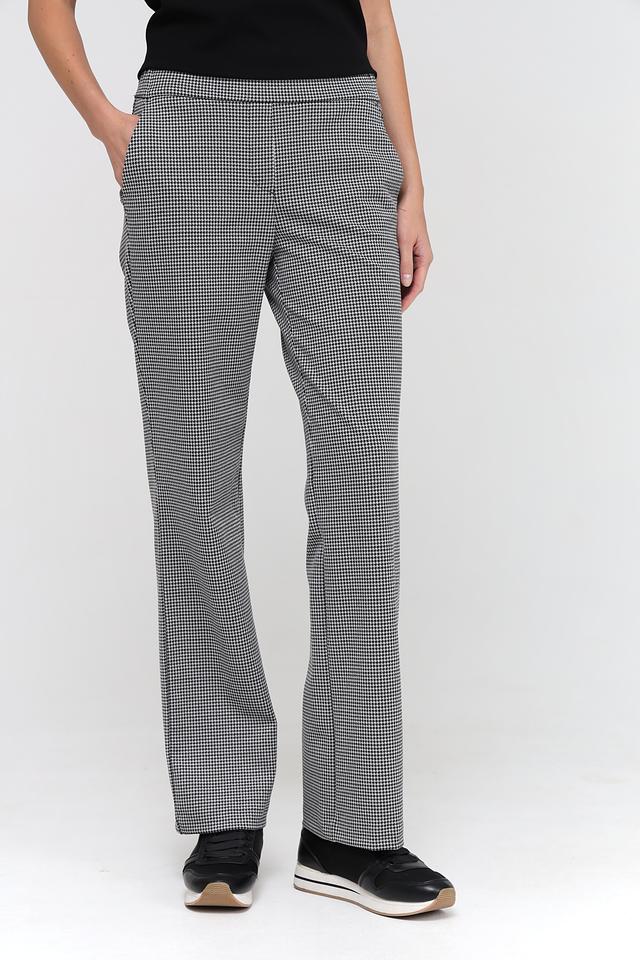 Женские брюки Toni collection чёрно-белого цвета с классическим клетчатым принтом. Модель выполнена из смесовой ткани с добавлением эластана для комфортной посадки и свободы движений. Состав: полиэстер 60%, полиамид 20%, метализ.нить 15%, эластан 5%