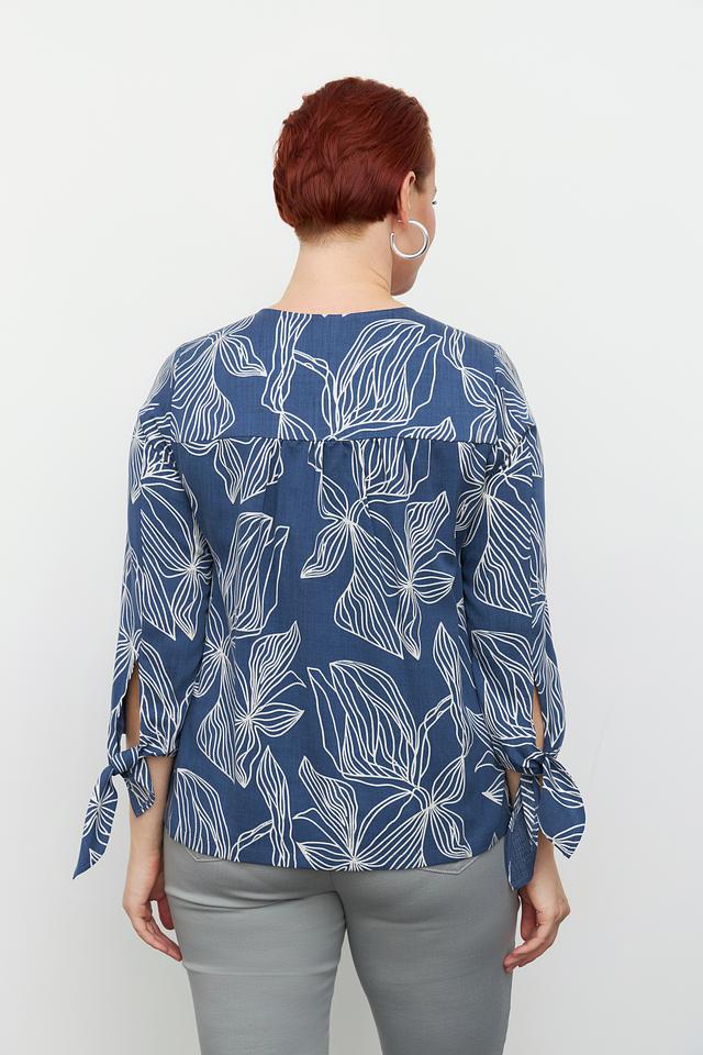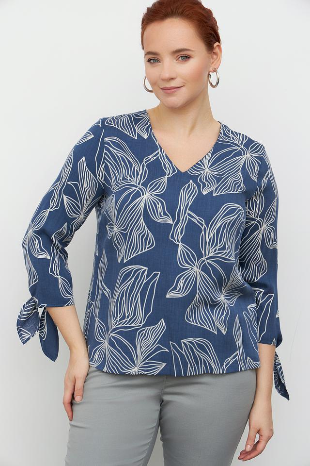 Синяя блузка Toni collection с оригинальным цветочным принтом станет отличным дополнением к вашему гардеробу. Модель выполнена из лёгкой ткани и имеет рукава 3/4 с завязками. Состав: луоселл 100%