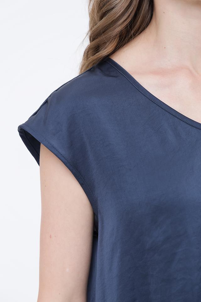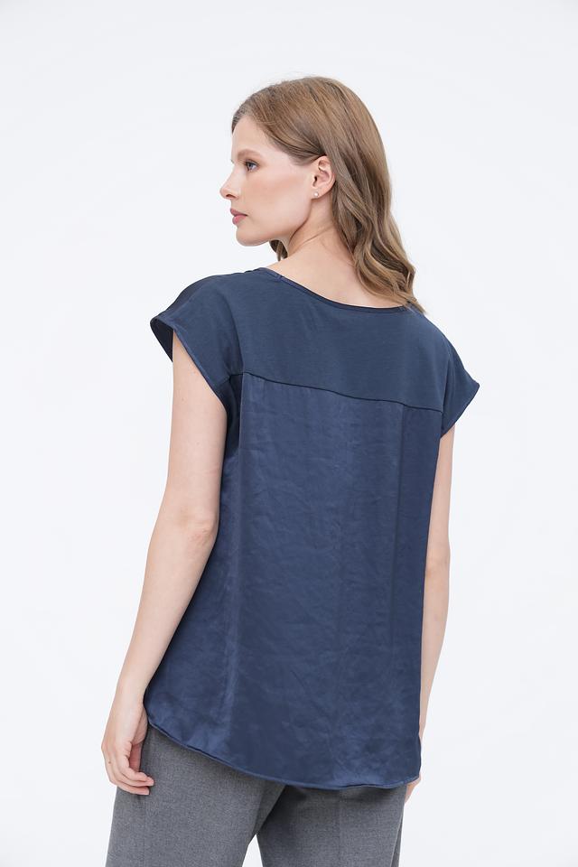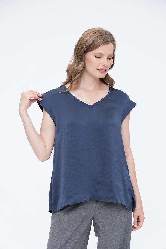 Особенности: V-образный вырез, короткие рукава, свободный крой, легкая ткань.