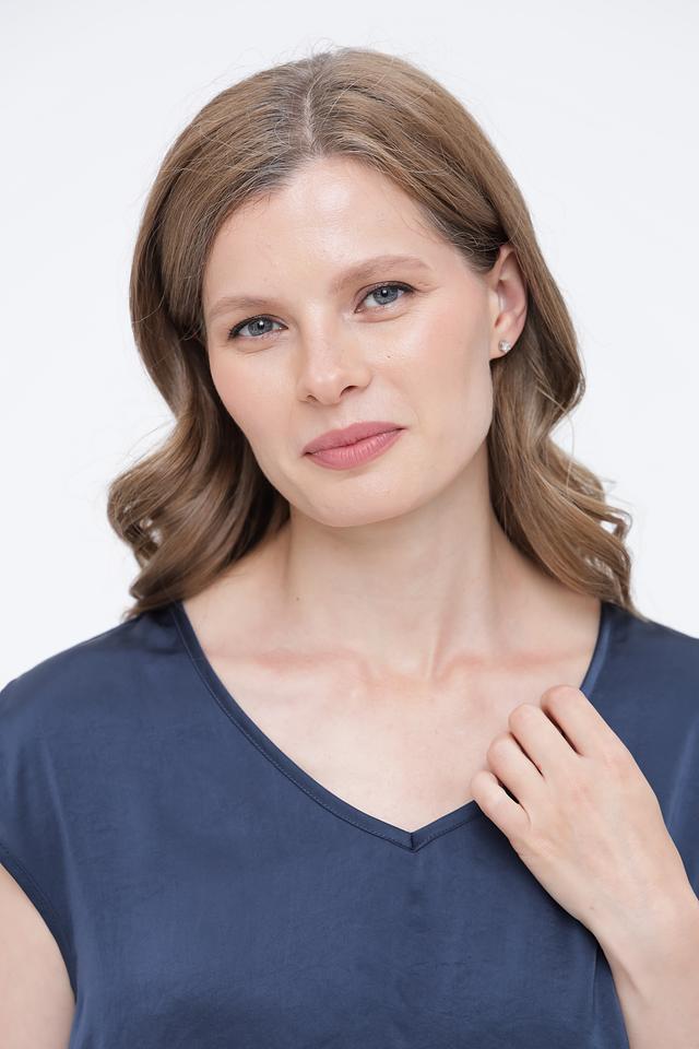 Синий топ от Luisa Cerano с V-образным вырезом и короткими рукавами – элегантный выбор для создания стильного образа. Изготовлен из 100% полиэстера, что обеспечивает комфорт и легкость в носке. Состав: полиэстер 100%