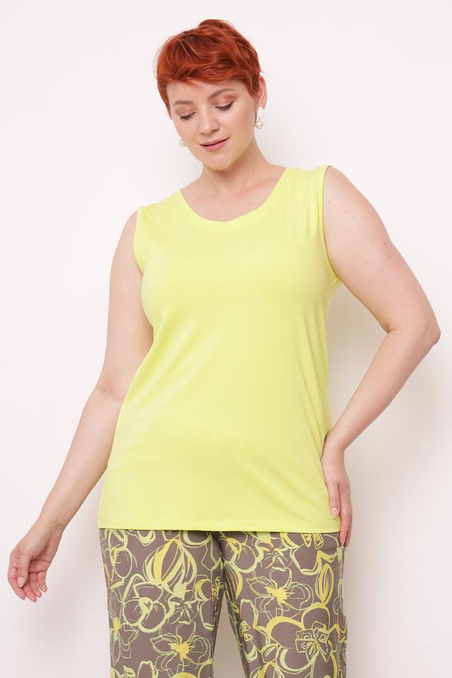 Топ Tuzzi лаймового цвета — это стильный и удобный выбор для летнего гардероба. Модель без рукавов с круглым вырезом горловины выполнена из мягкого и приятного к телу трикотажа. Состав: хлопок 45%, модал 45%, эластан 10%