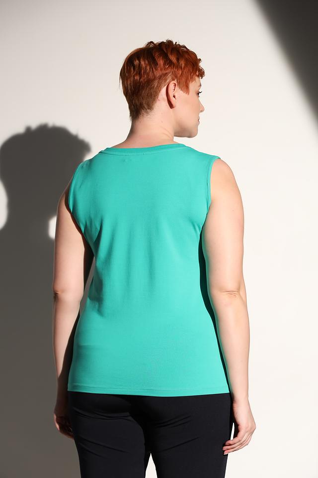 Топ Tuzzi бирюзового цвета — это базовая модель без рукавов с V-образным вырезом. Изготовлен из мягкого и приятного к телу сочетания хлопка, модала и эластана, обеспечивающего комфорт и свободу движений. Состав: хлопок 45%, модал 45%, эластан 10%