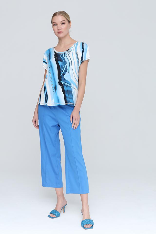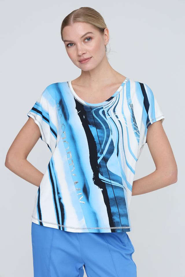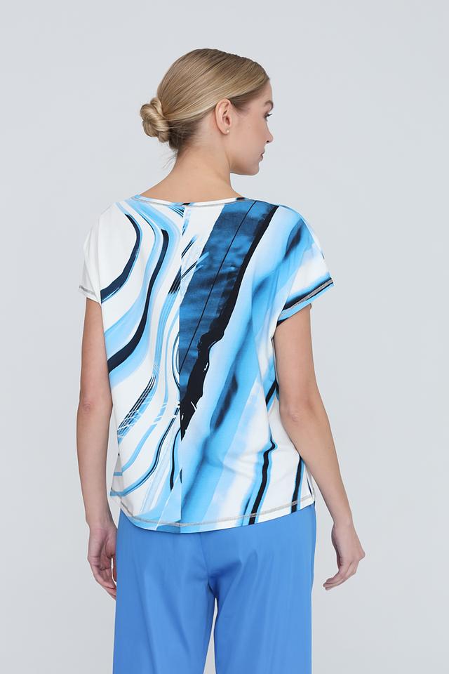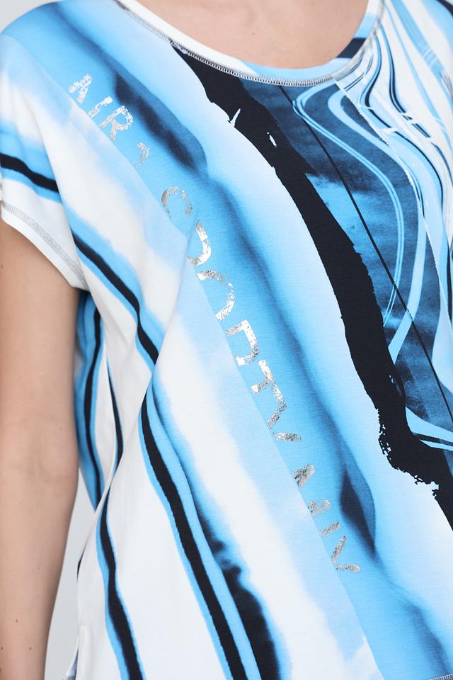 Блуза Tuzzi голубого цвета с оригинальным абстрактным принтом станет стильным дополнением вашего гардероба. Модель выполнена из мягкой и приятной к телу ткани, обеспечивающей комфорт в носке. Состав: хлопок 48%, модал 47%, эластан 5%