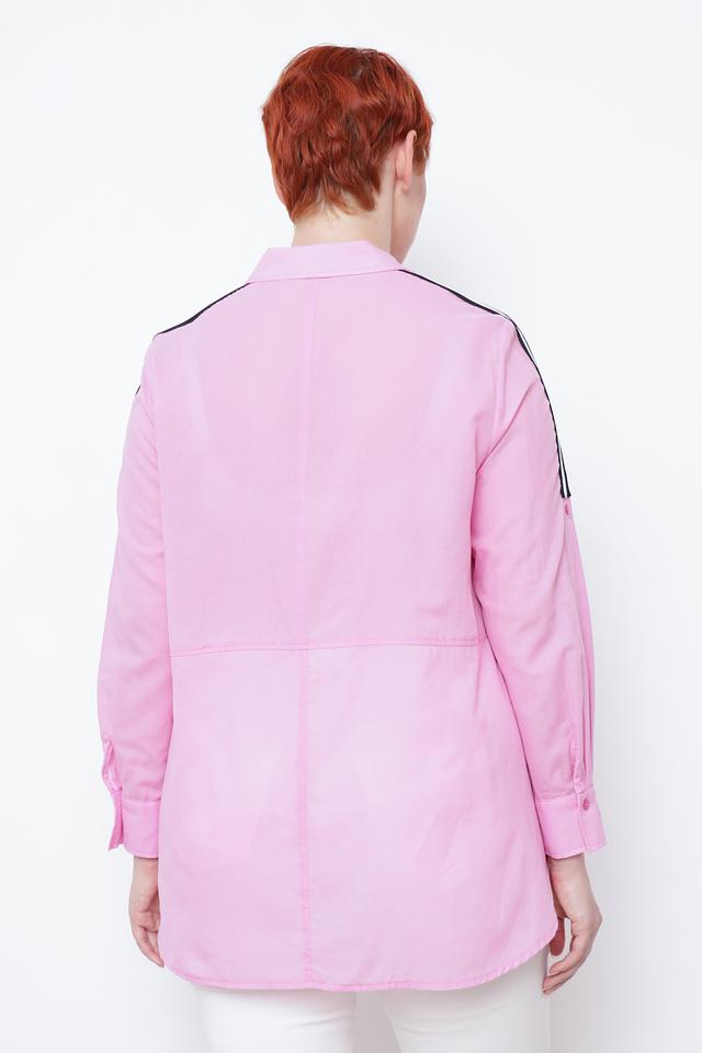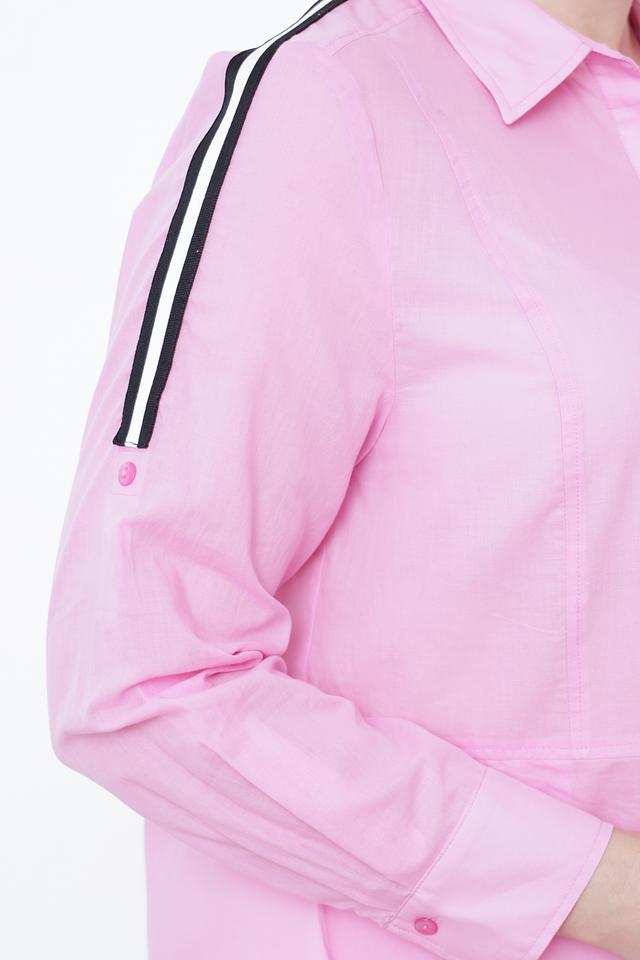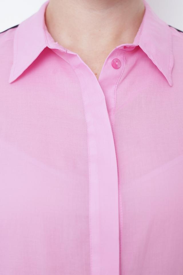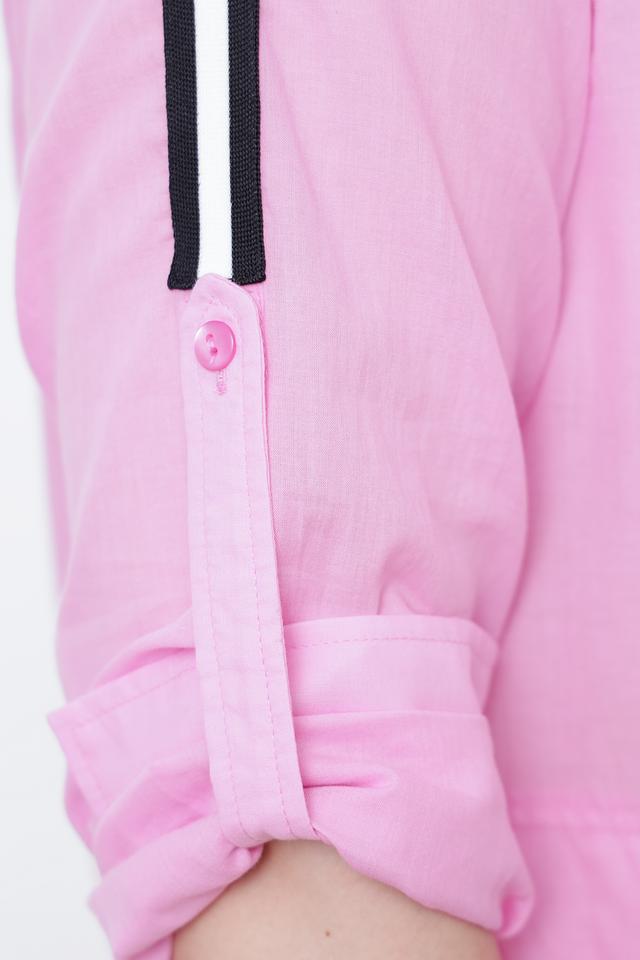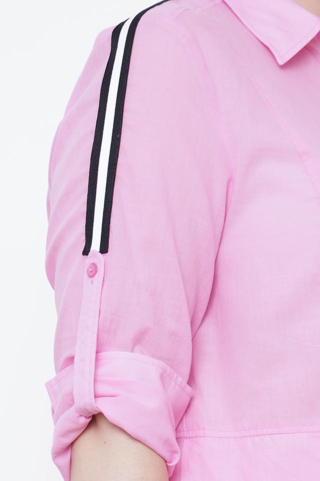 Розовая рубашка Tuzzi с длинным рукавом и контрастными полосками на рукавах. Изготовлена из 100% хлопка, обеспечивающего комфорт и воздухопроницаемость. Стильный и удобный вариант для повседневного образа. Состав: хлопок 100%