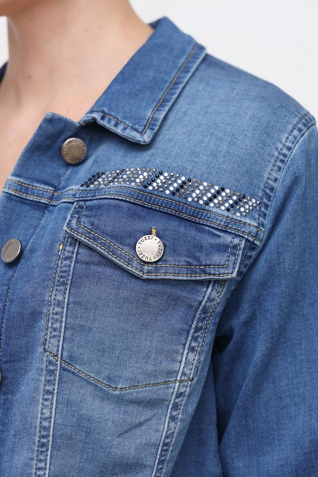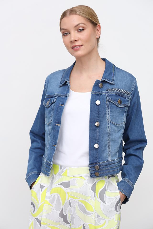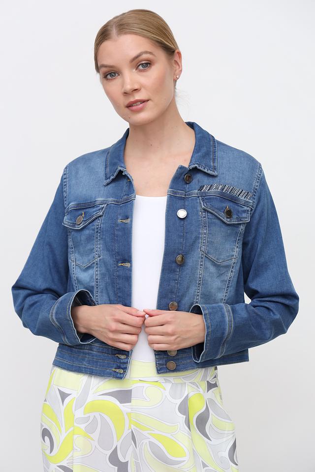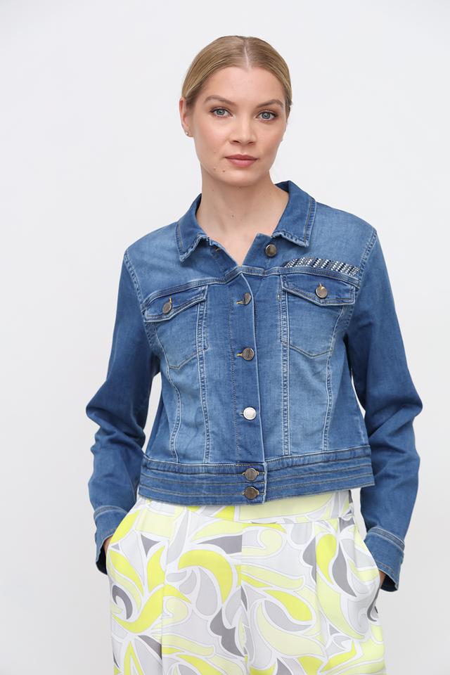 Жакет Tuzzi из денима синего цвета – стильная и удобная модель с вышивкой на плечах. Укороченный крой и классический воротник делают этот жакет универсальным дополнением к любому образу. Состав: хлопок 98%, эластан 2%
