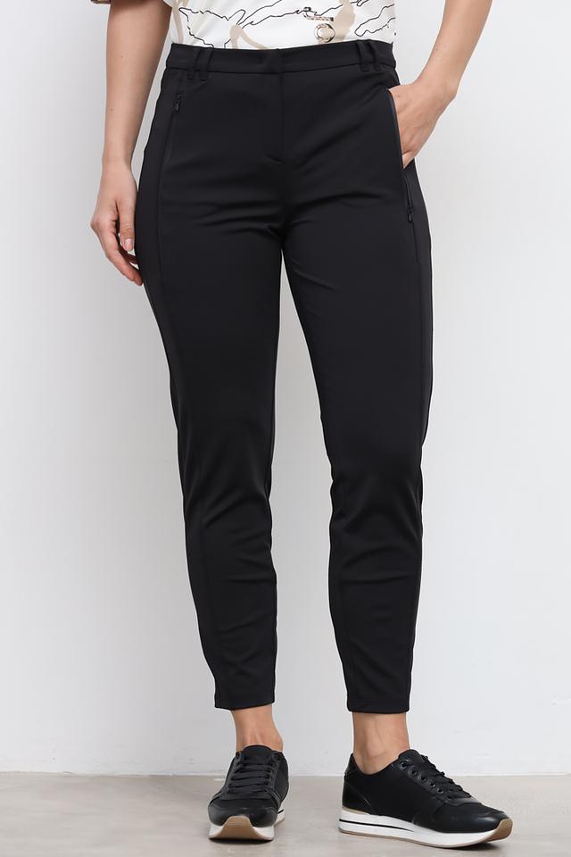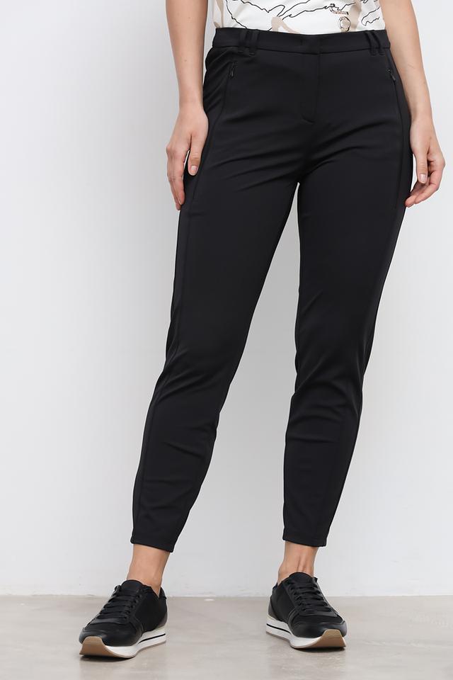 Застежка на молнию и пуговицу обеспечивает надежную фиксацию. Брюки дополнены функциональными карманами, которые позволяют удобно хранить необходимые мелочи. Состав: 94% полиэстер, 6% эластан.
