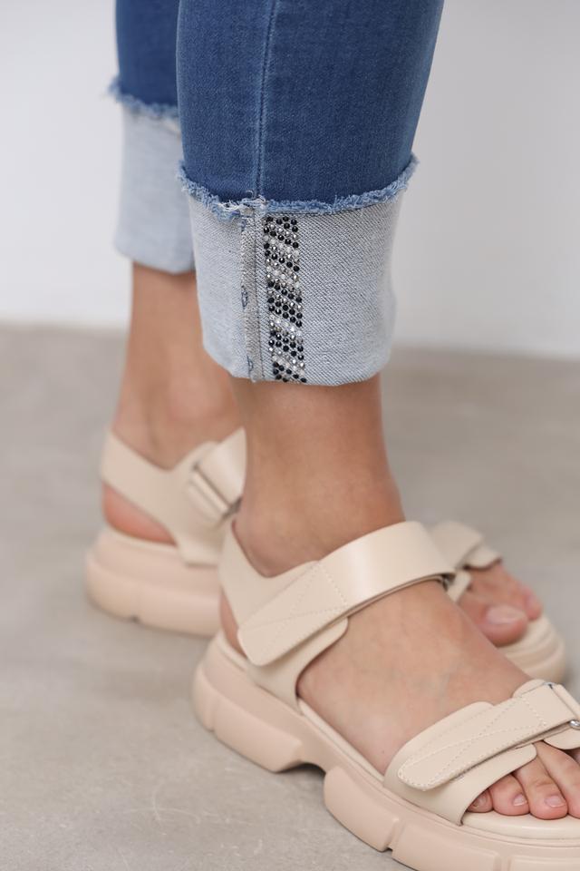 Особый акцент в дизайне – декоративная отделка на манжетах, выполненная в виде небольших страз, что добавляет джинсам изысканности и оригинальности. Данная модель идеально подойдет для создания повседневных образов.