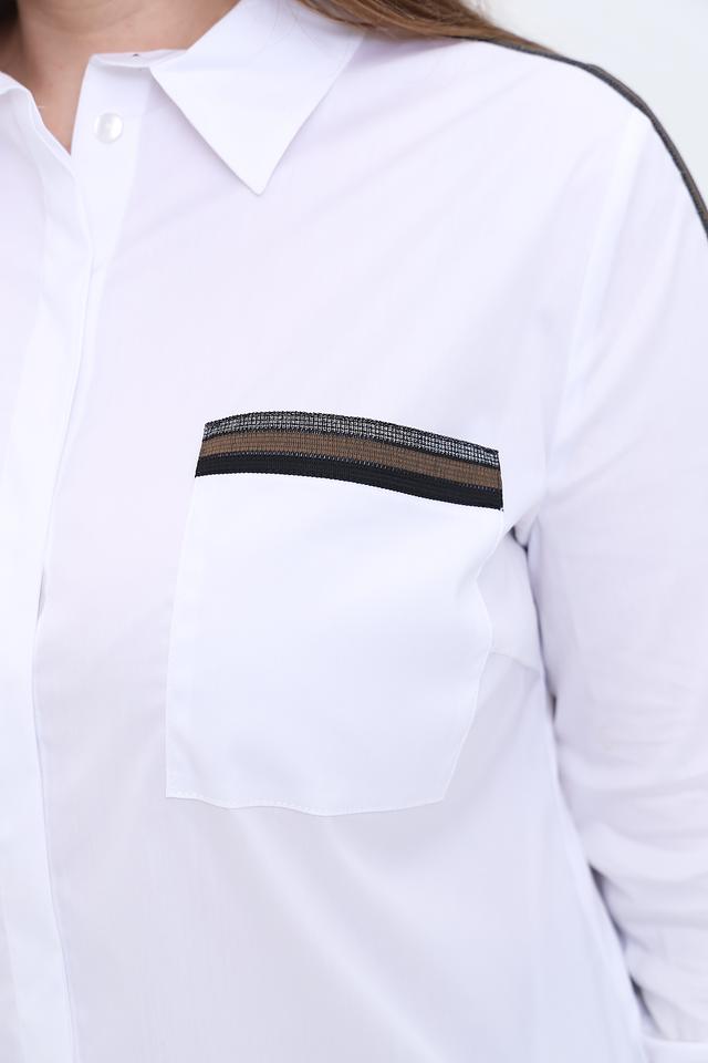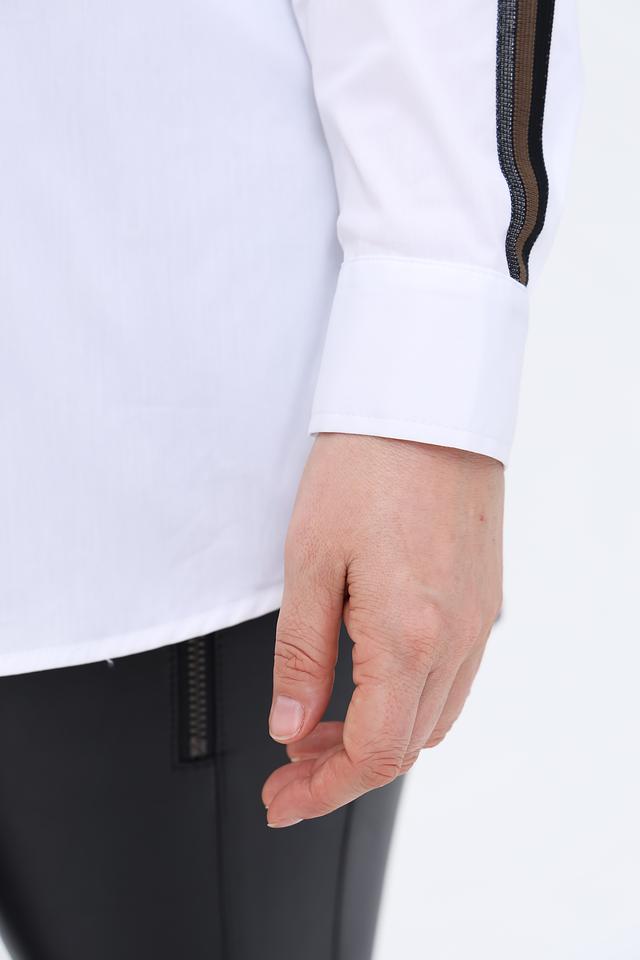 Белая рубашка Tuzzi с длинным рукавом и черными полосками по бокам – стильное и комфортное решение для создания повседневного образа. Изготовлена из хлопка с добавлением полиамида и эластана, что обеспечивает удобство в носке и сохранение формы. Состав: хлопок 74%, полиамид 21%, эластан 5%