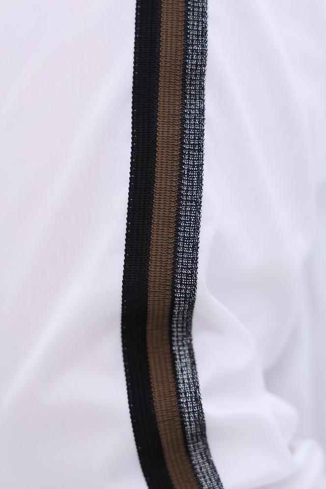 Эта рубашка от Tuzzi станет отличным дополнением к вашему гардеробу. Выполнена в белом цвете с контрастными черными полосками по бокам и на нагрудном кармане, что придает ей современный и динамичный вид.