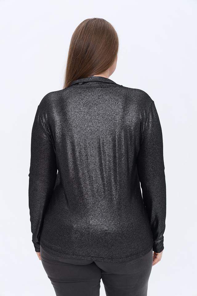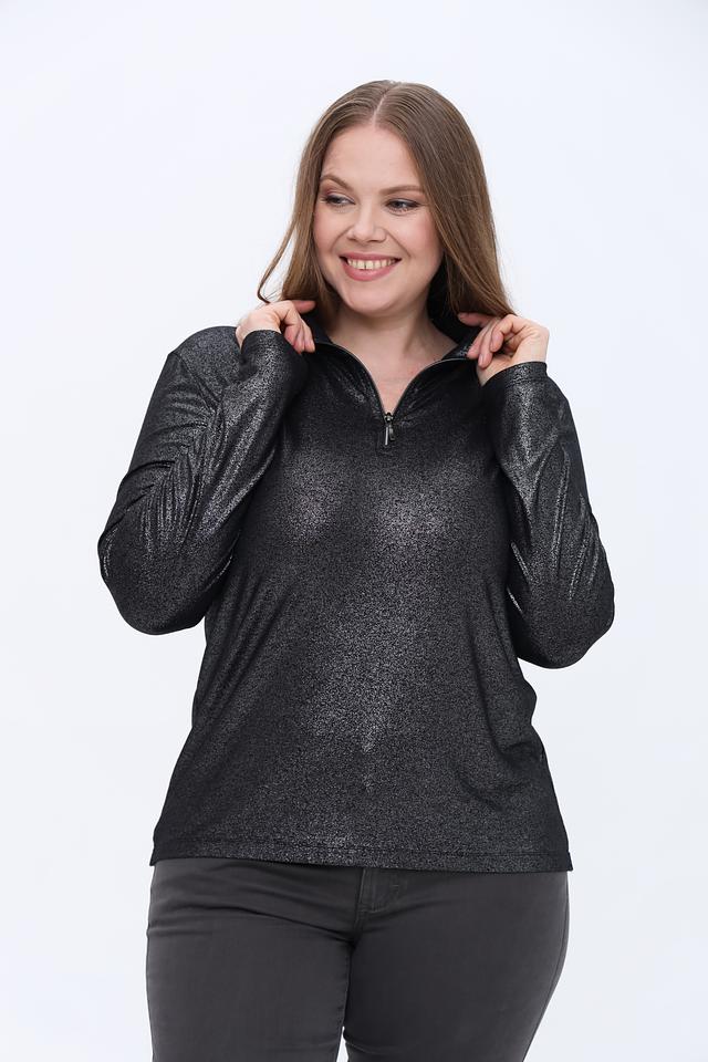 Блуза имеет эффектную отделку из пайеток, которые придают ей праздничный вид. Застежка-молния на горловине позволяет регулировать глубину выреза. Длинные рукава делают ее подходящей для прохладной погоды.