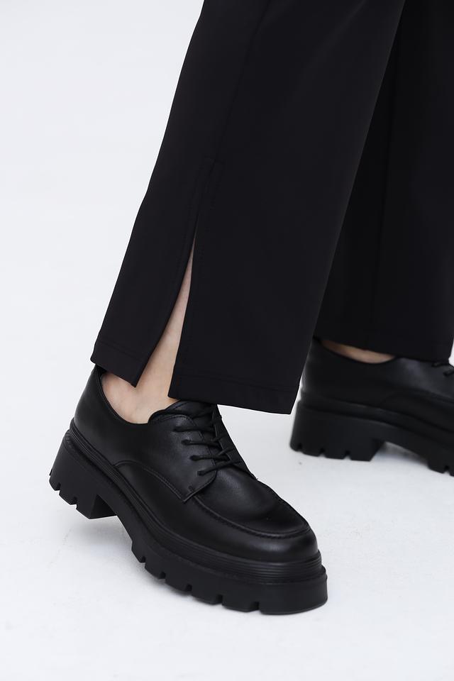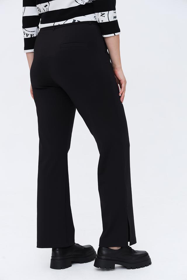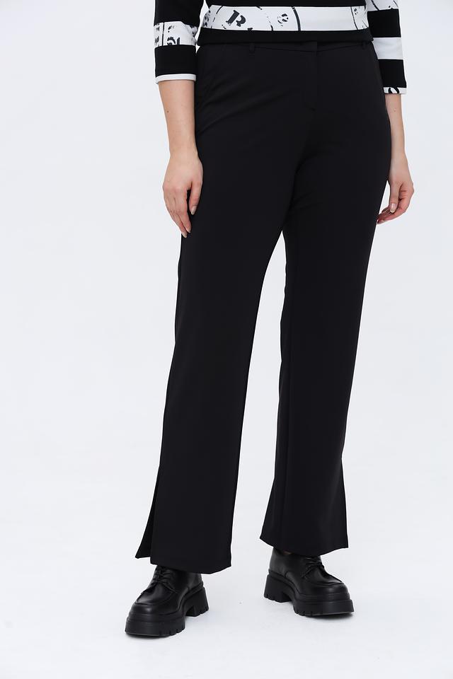 Брюки имеют прямой крой, который визуально вытягивает силуэт и обеспечивает комфортную посадку. Оригинальный дизайн дополняют разрезы по бокам, придающие образу динамичность и лёгкость.