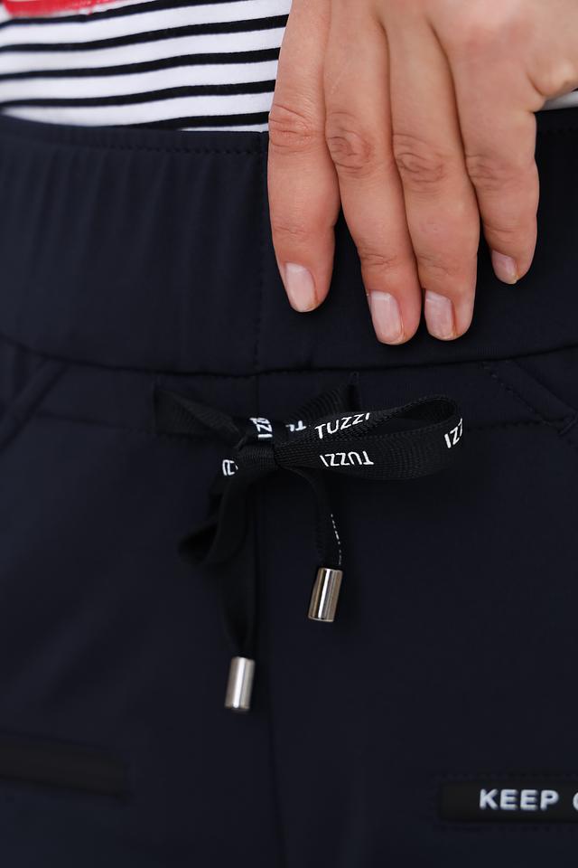 Спортивные брюки Tuzzi темно-синего цвета — удобная и стильная модель для активного образа жизни. Брюки выполнены из мягкого полиэстера с добавлением эластана, обеспечивающего комфорт при движении. Эластичный пояс с кулиской позволяет регулировать посадку. Состав: полиэстер 94%, эластан 6%