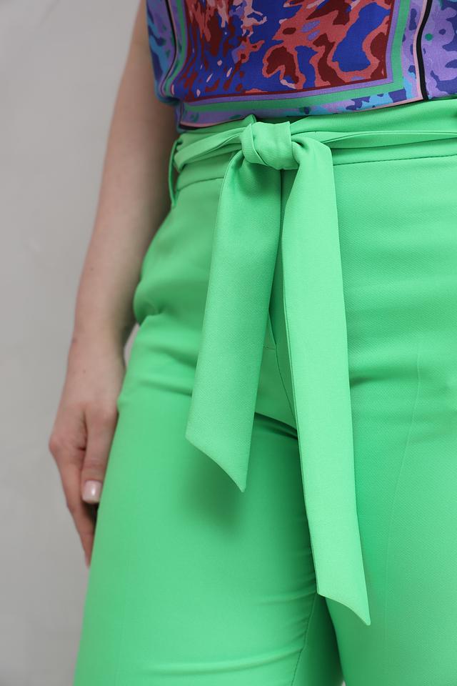 Женские брюки Tuzzi лаймового цвета — стильная модель с завышенной талией и декоративным поясом-завязкой. Брюки прямого кроя, с прорезными карманами и аккуратными складками спереди. Состав: полиэстер 84%, эластан 16%