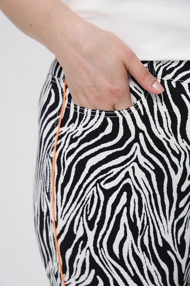 Оригинальный дизайн с принтом "зебра" и оранжевая декоративная полоса по бокам делают эти джинсы ярким акцентом в вашем гардеробе. Они идеально подойдут для создания модных и запоминающихся образов. Джинсы Tuzzi – это сочетание стиля, комфорта и качества.