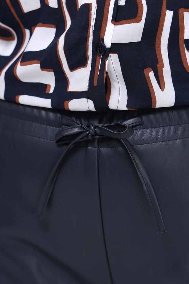 Синие брюки из экокожи от Tuzzi – стильное и комфортное решение для создания модных образов. Модель выполнена из высококачественного материала с эластичными вставками и имеет удобный пояс на резинке с кулиской. Состав: полиэстер 50%, полиуретан 50%