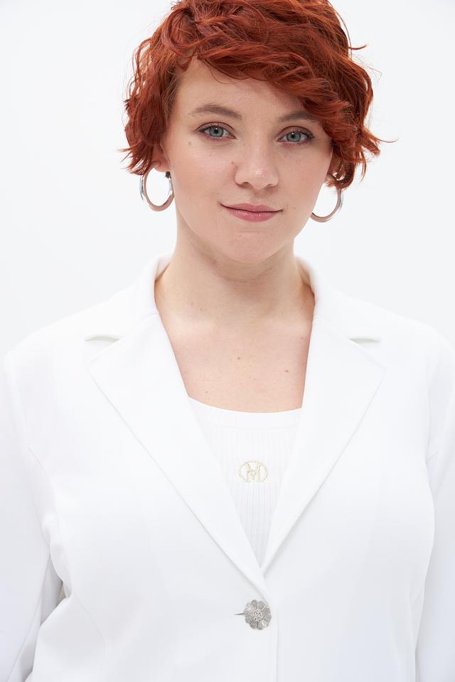 Белый жакет Tuzzi – это элегантный и универсальный элемент женского гардероба. Классический крой жакета идеально подходит для создания различных образов, от деловых до повседневных.