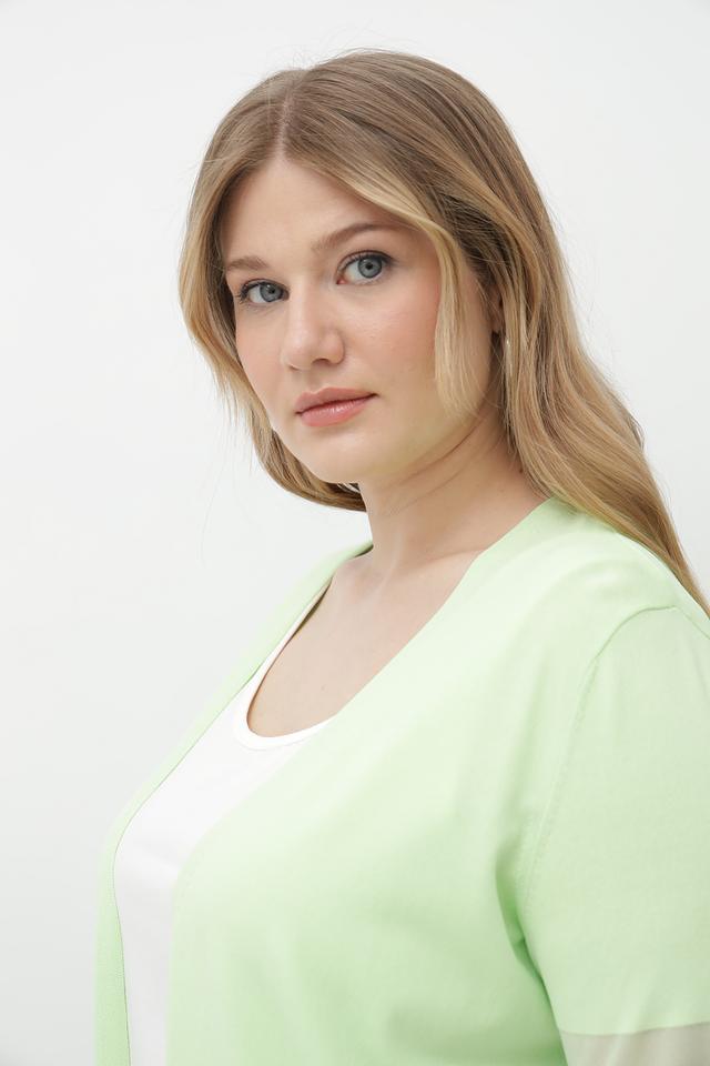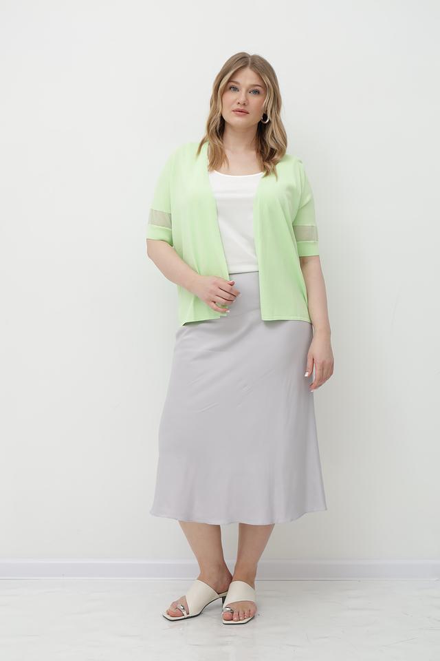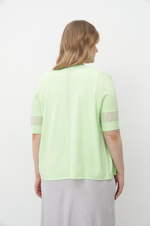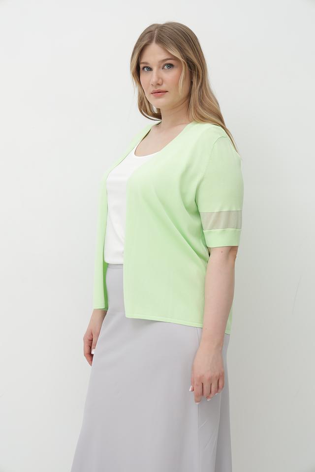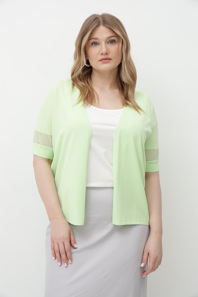 Светло-зеленый жакет Tuzzi из вискозы с элементами сетки. Модель имеет V-образный вырез и короткие рукава с сетчатыми вставками. Состав: 75% вискоза, 25% полиамид. Состав: вискоза 75%, полиамид 25%