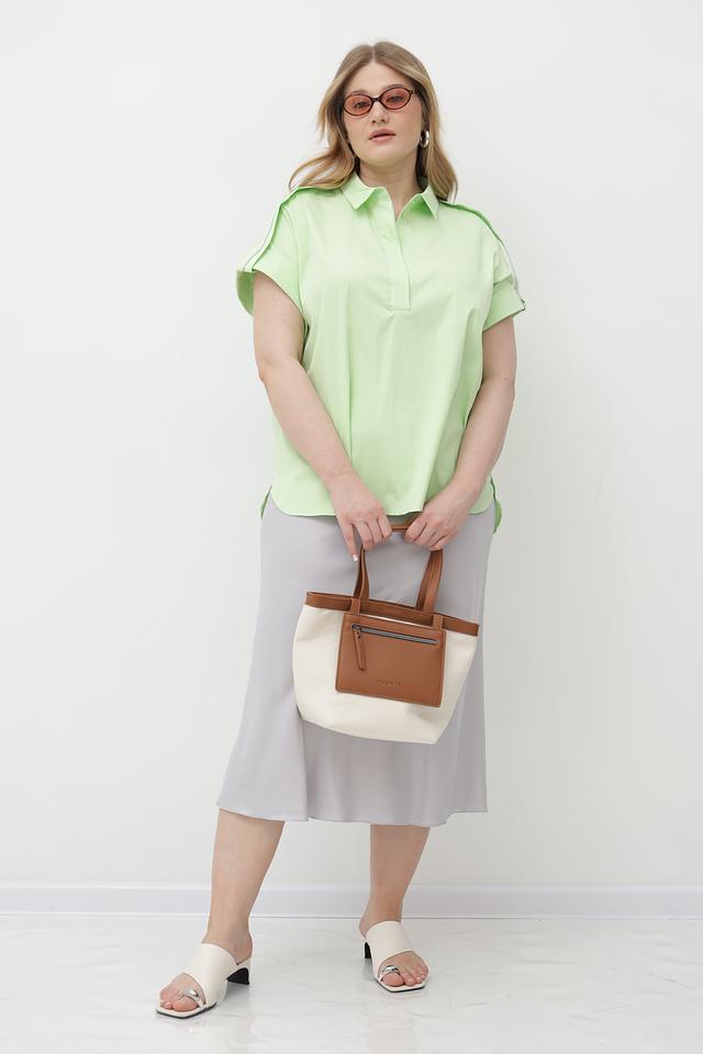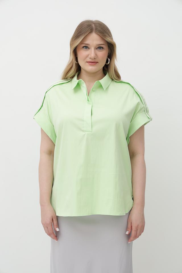 Блузка выполнена из качественного материала: 76% хлопок, 21% полиамид и 3% эластан. Хлопок обеспечивает воздухопроницаемость и мягкость, полиамид повышает износостойкость, а эластан добавляет эластичность и комфорт при носке. Эта блузка станет незаменимой вещью в вашем гардеробе, идеально подходящей для повседневной носки и особых случаев.
