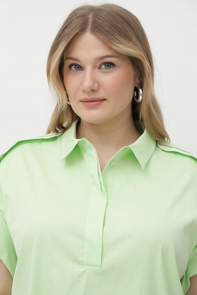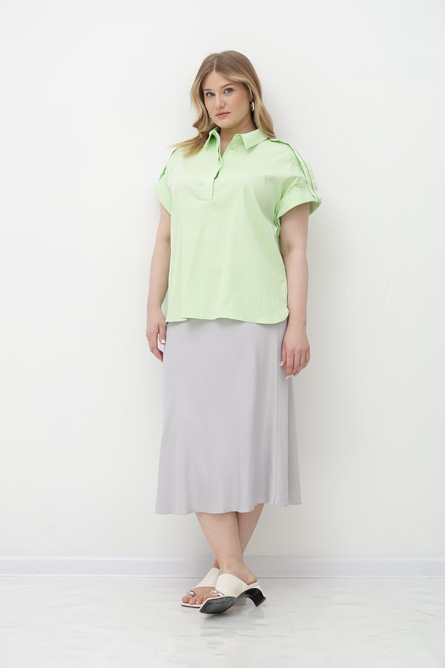 Модель имеет свободный крой, который не сковывает движений и обеспечивает комфорт в течение всего дня. Оригинальные рукава-крылышки придают блузе особый шарм и делают ее уникальной. Воротник-стойка добавляет элегантности.