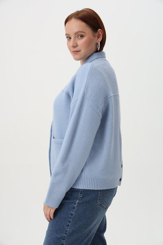 Голубой жакет Tuzzi из мягкой пряжи. Модель выполнена с застежкой на пуговицы и накладными карманами. Состав: шерсть, полиакрил, полиамид, полиэстер, эластан. Состав: полиакрил 68%, полиэстер 12%, полиамид 11%, шерсть 6%, эластан 3%