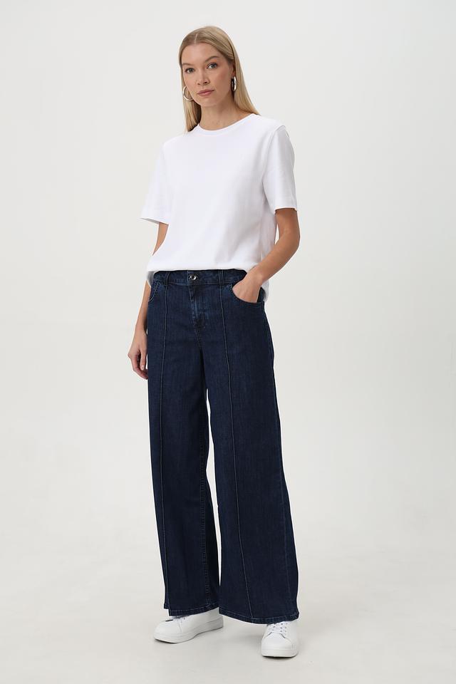 Джинсы отличаются оригинальным дизайном, подчеркнутым декоративными швами отделкой, проходящими по всей длине штанин. Традиционные пять карманов обеспечивают функциональность и удобство.