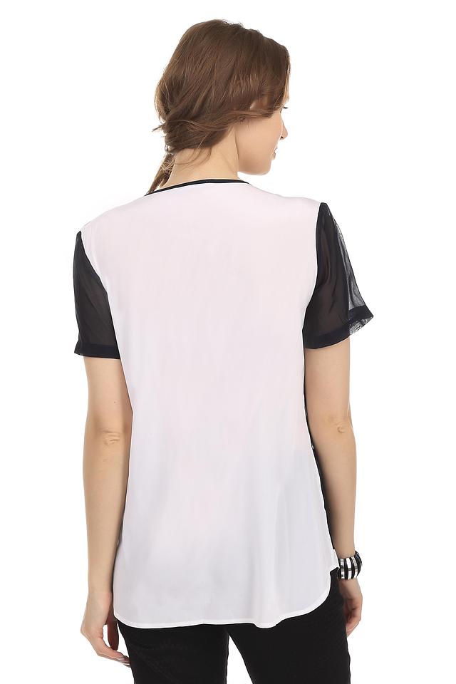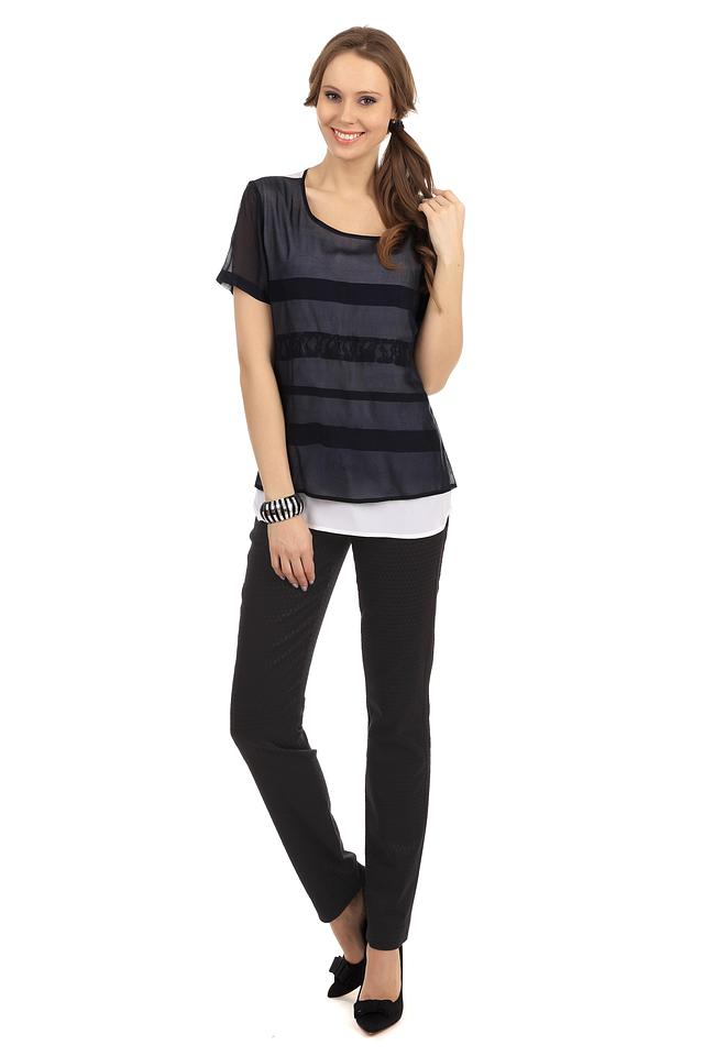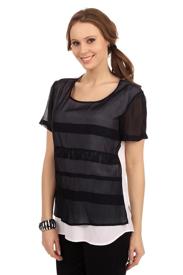 Блуза имеет свободный крой, который обеспечивает комфорт в носке. Верхний слой выполнен из полупрозрачной ткани, украшенной черным кружевом. Под ним – подкладка из шелка, которая обеспечивает приятные ощущения на коже.