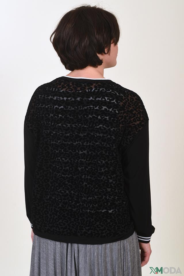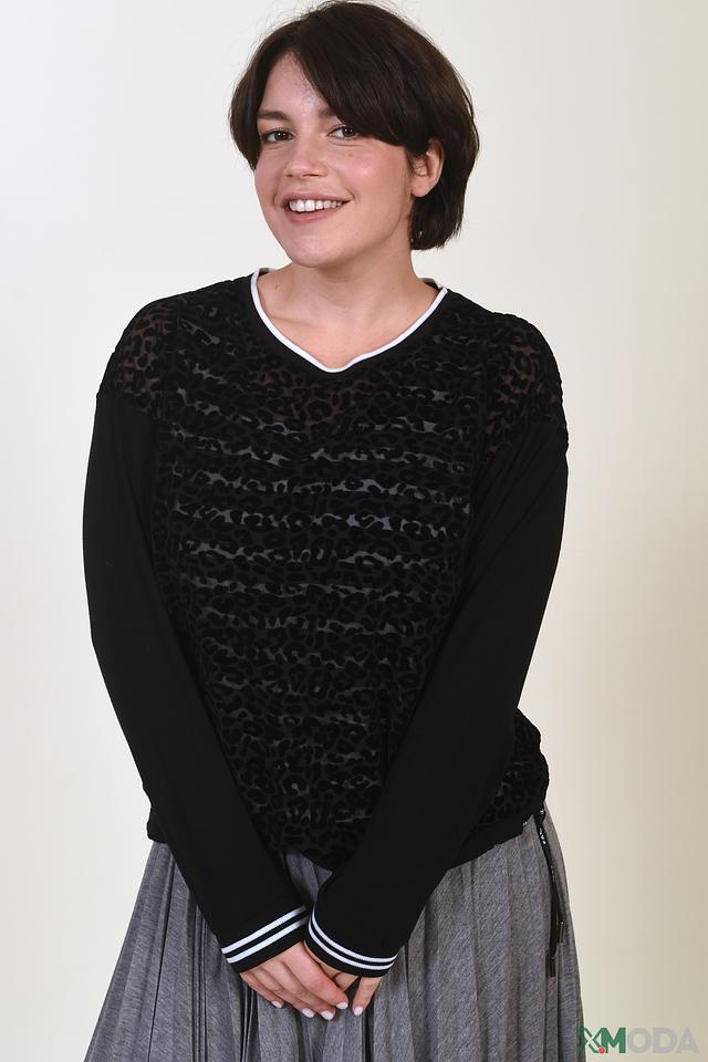 Стильная блуза Tuzzi чёрного цвета с оригинальным леопардовым принтом и белой отделкой. Модель с длинными рукавами и V-образным вырезом станет отличным дополнением к вашему гардеробу. Состав: вискоза 90%, эластан 10%