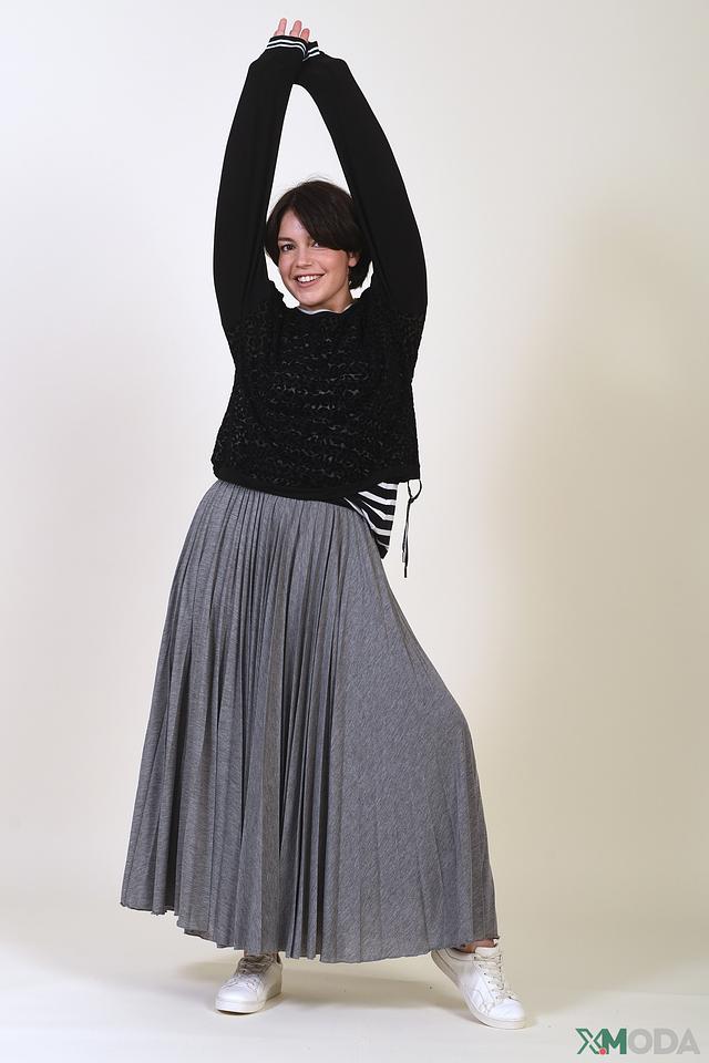 Модель выполнена из мягкой и приятной к телу вискозы с добавлением эластана, обеспечивающего комфортную посадку и свободу движений. Белая отделка на горловине и манжетах рукавов добавляет контраст и завершенность образу.