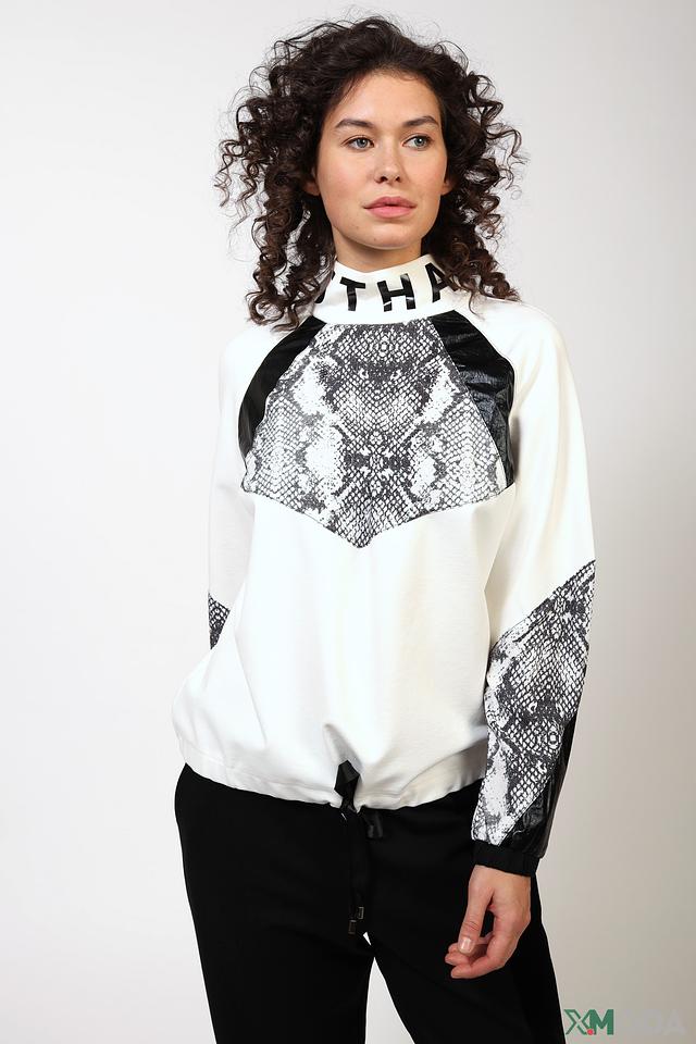 Белый пуловер Tuzzi с оригинальным принтом reptile и надписью на плече станет ярким акцентом вашего образа. Модель выполнена из мягкого и приятного к телу трикотажа, обеспечивающего комфорт в носке. Состав: вискоза 68%, полиамид 27%, эластан 5%