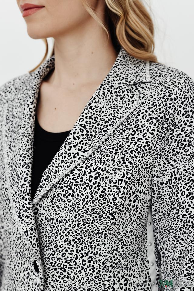 Этот стильный жакет от Tuzzi выполнен в белом цвете и украшен эффектным леопардовым принтом. Жакет имеет классический крой с лацканами и застежкой на пуговицы.