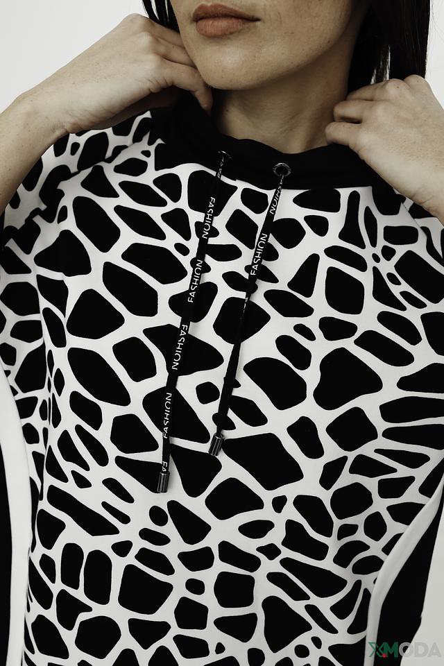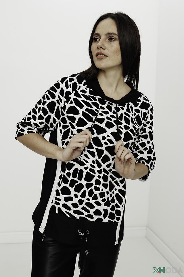 Блуза Tuzzi с принтом и капюшоном чёрно-белая