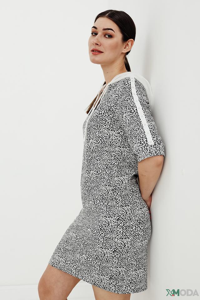 Платье от Tuzzi с ярким леопардовым принтом и удобным капюшоном станет отличным выбором для повседневного образа. Модель выполнена из мягкого хлопка с добавлением полиэстера и эластана, обеспечивающих комфорт и свободу движений. Состав: хлопок 73%, полиэстер 24%, эластан 3%