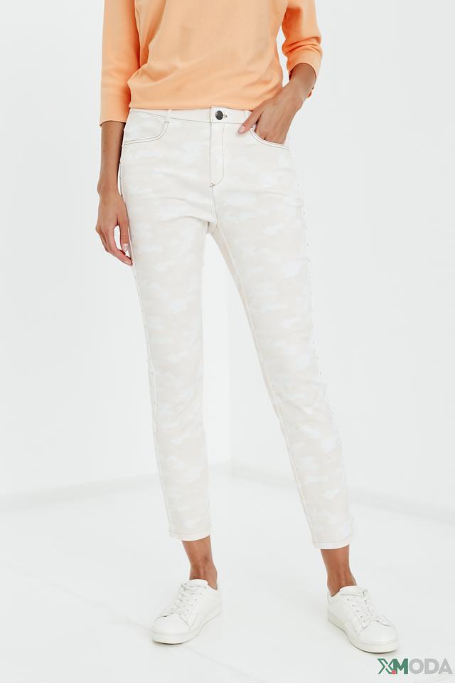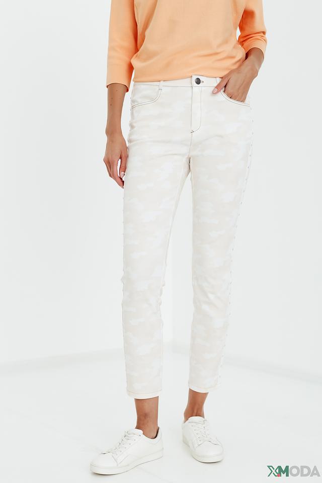 Женские брюки Tuzzi цвета слоновой кости с оригинальным камуфляжным принтом станут стильным дополнением к вашему гардеробу. Модель выполнена из мягкого и приятного к телу сочетания лиоцелла, хлопка и эластана, обеспечивающего комфорт при носке. Состав: лиоцел 58%, хлопок 39%, эластан 3%