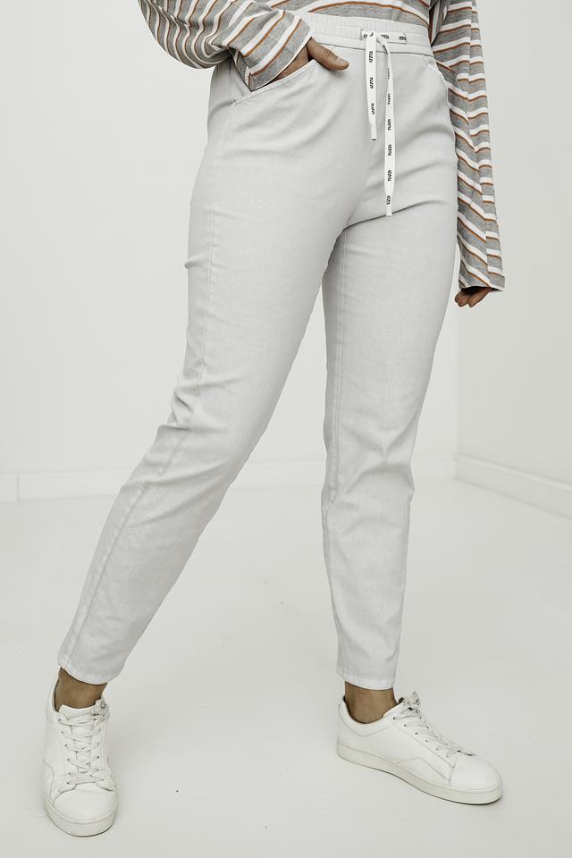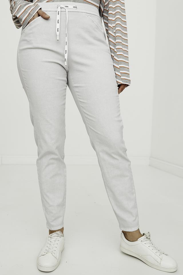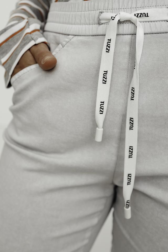 Брюки имеют эластичный пояс с декоративными шнурками, которые не только украшают модель, но и позволяют регулировать посадку. Шнурки с логотипом бренда Tuzzi добавляют стильный акцент.