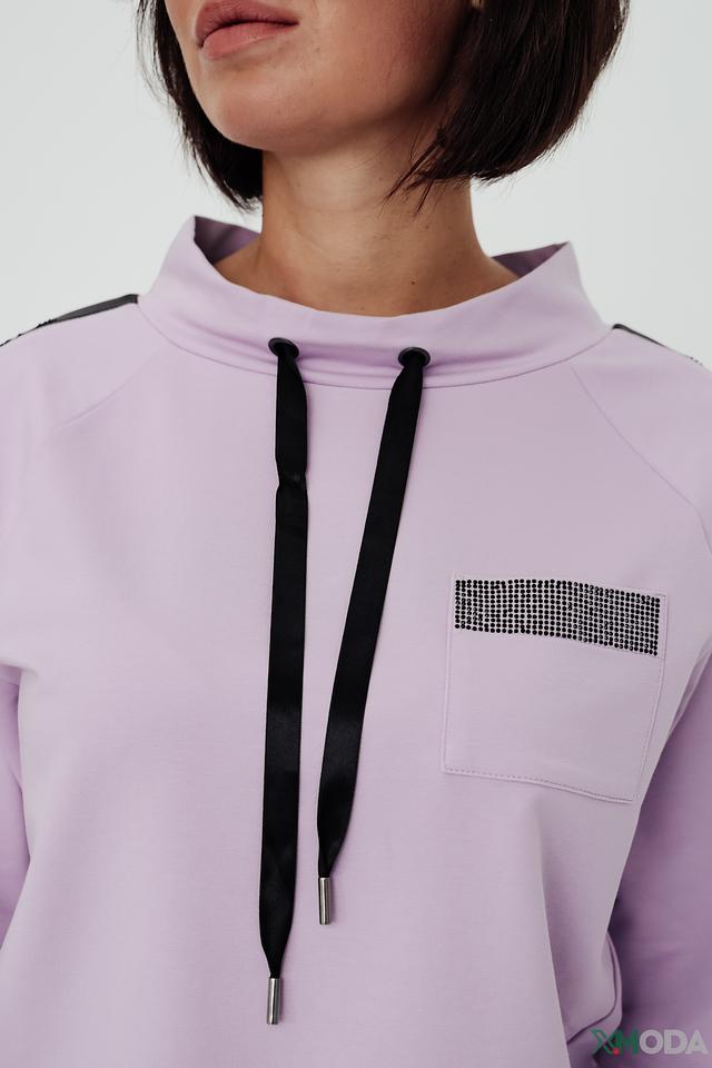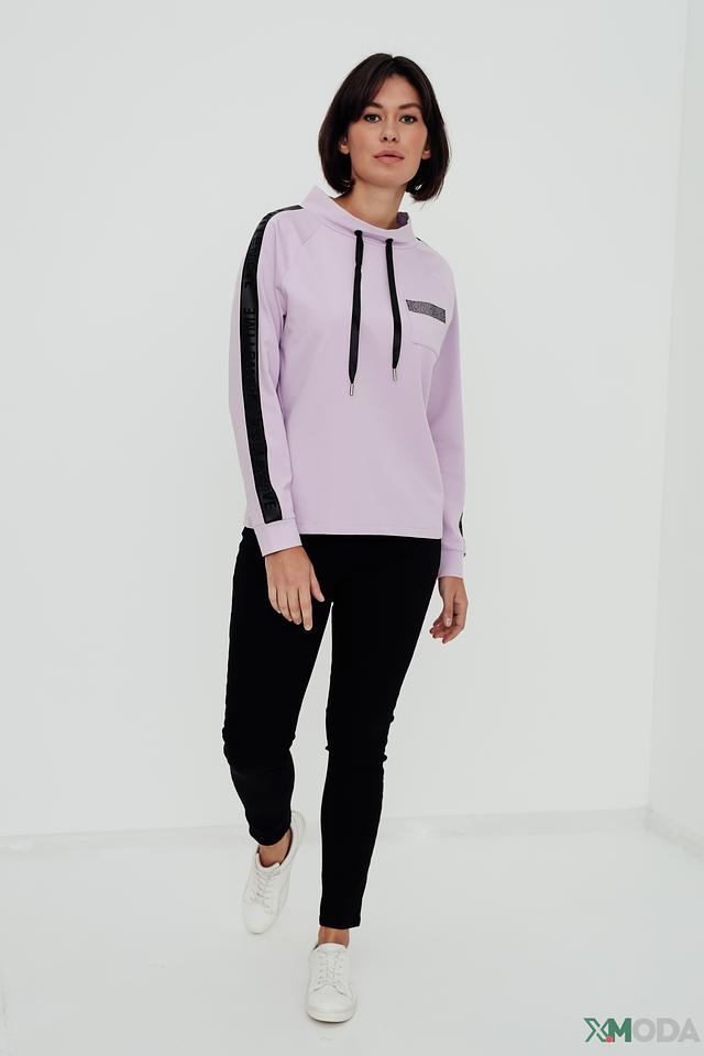 Женская толстовка Tuzzi лавандового цвета с декоративными полосками на рукавах и капюшоне. Модель выполнена из мягкого и приятного к телу материала, обеспечивающего комфорт в повседневной носке. Состав: хлопок 75%, полиэстер 20%, эластан 5%