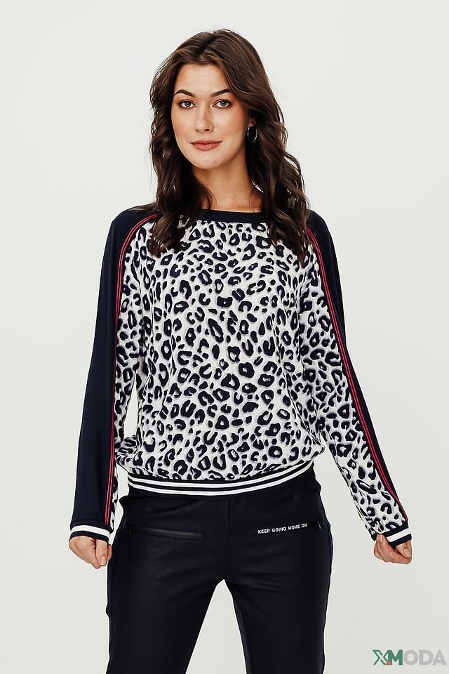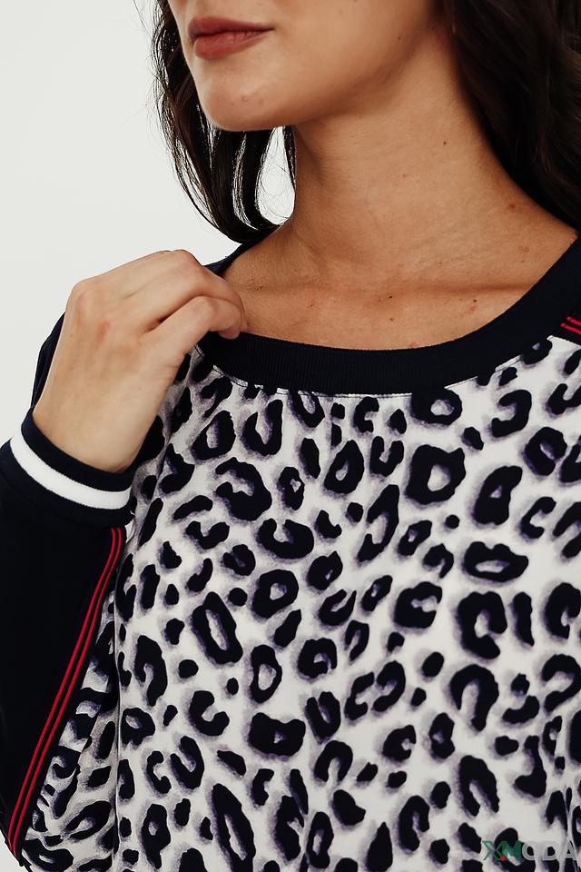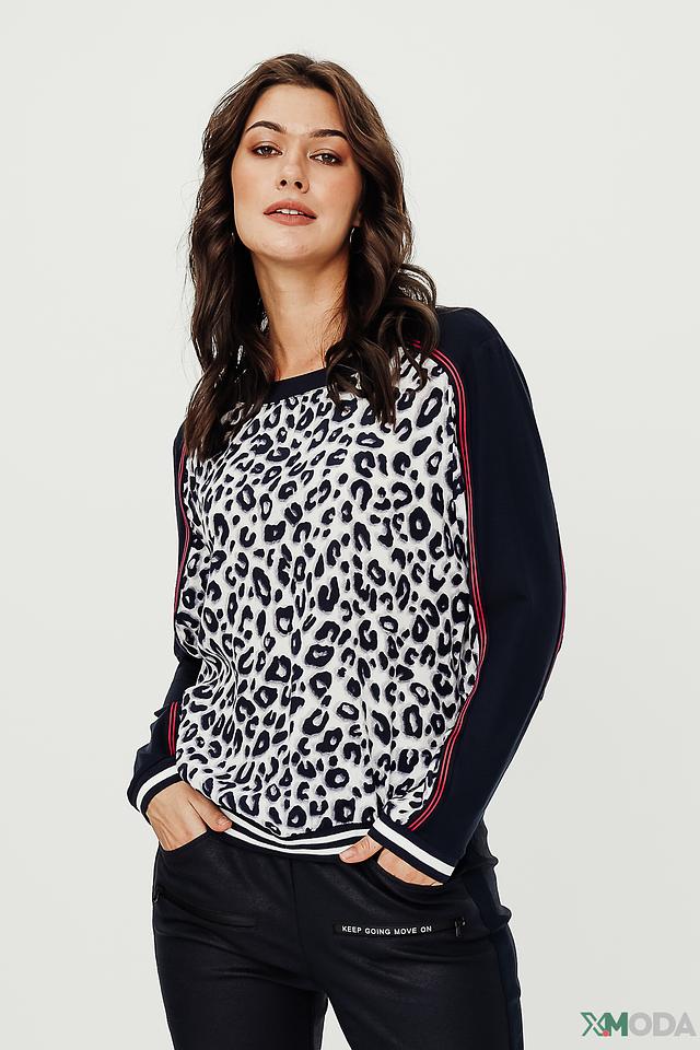 Эта блуза от Tuzzi – отличный выбор для создания модного и удобного образа. Основной цвет блузы – белый, но доминирующим элементом является эффектный леопардовый принт, покрывающий большую часть передней панели.