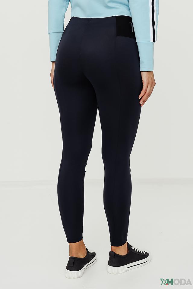 Брюки имеют облегающий крой, который подчеркивает фигуру, и эластичный пояс, обеспечивающий комфортную посадку. На поясе расположен логотип бренда, добавляющий изделию узнаваемость.
