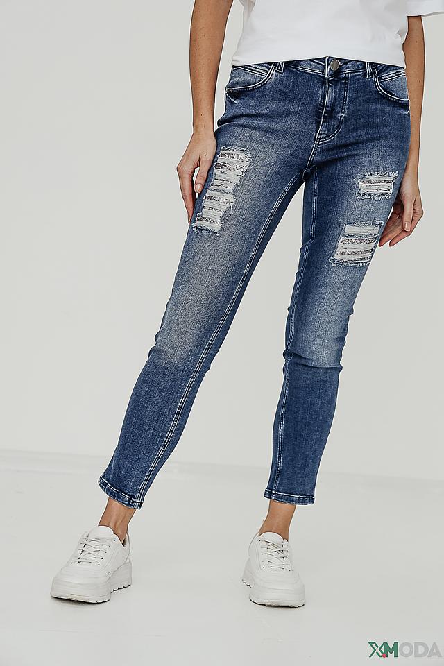 Джинсы Tuzzi синего цвета с эффектным декором из рваных элементов и аппликаций. Модель выполнена из качественного хлопка с добавлением эластана для комфортной посадки и свободы движений. Состав: хлопок 98%, эластан 2%