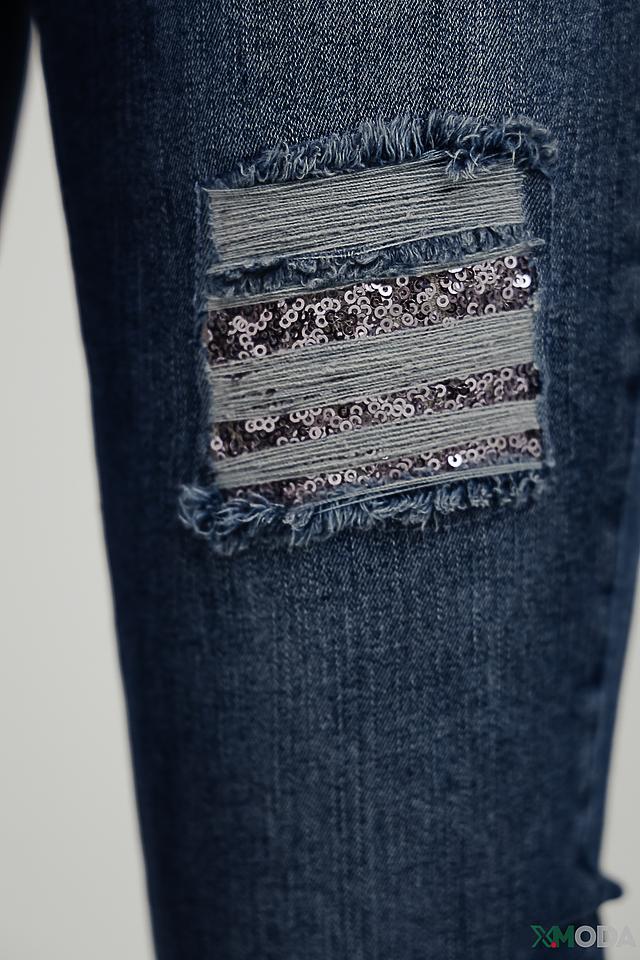 Особенностью этих джинсов является декор из рваных элементов и аппликаций, которые придают им дерзкий и современный вид. Джинсы изготовлены из высококачественного хлопка (98%) с добавлением эластана (2%), что обеспечивает удобную посадку и эластичность.