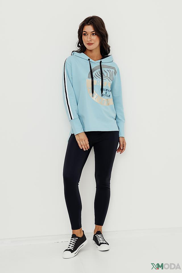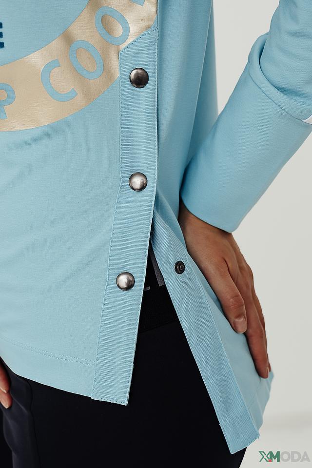 Голубая толстовка от Tuzzi с оригинальным принтом и черными вставками. Модель выполнена из мягкого хлопка с добавлением полиэстера и эластана для комфорта и сохранения формы. Состав: хлопок 75%, полиэстер 20%, эластан 5%