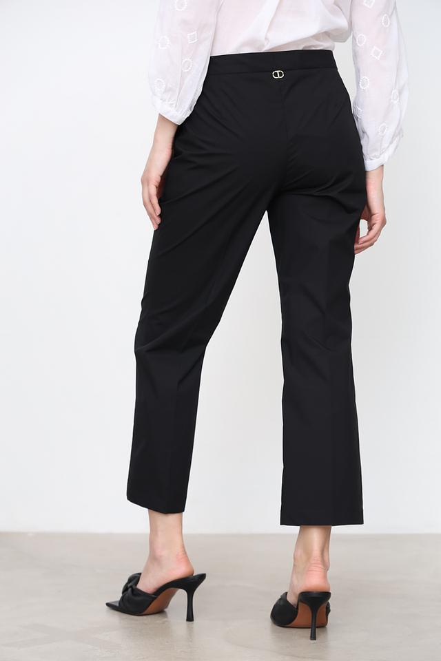 Чёрные брюки Twin Set прямого кроя — элегантное решение для создания стильного образа. Классический дизайн и комфортный крой делают эти брюки универсальным дополнением к вашему гардеробу. Состав: хлопок 96%, эластан 4%