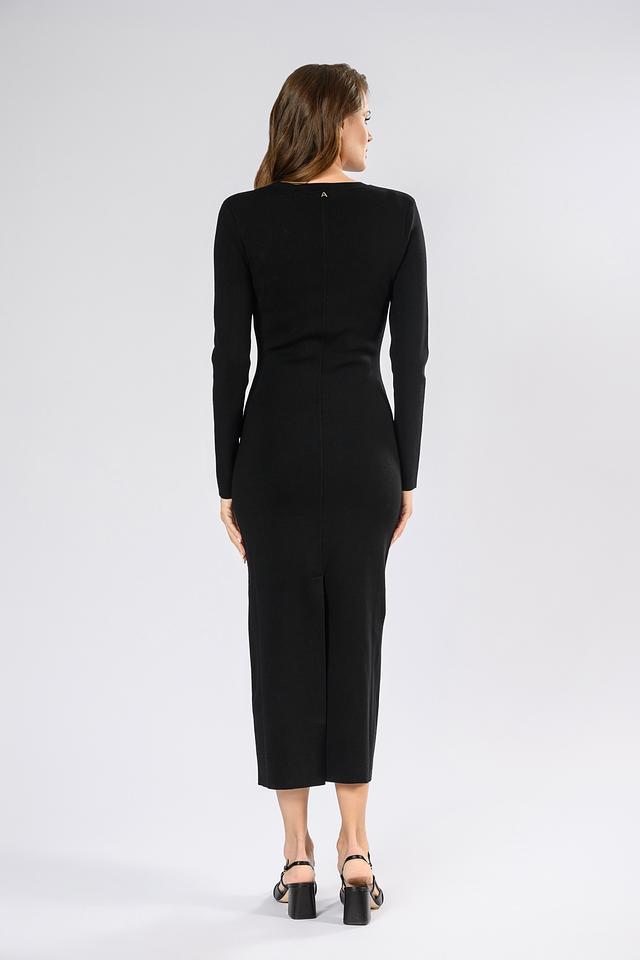 Изысканное вечернее платье от Twin Set Actitude, выполненное в классическом чёрном цвете. Платье имеет приталенный силуэт, который подчеркивает достоинства фигуры, и длину миди, подходящую для различных мероприятий.