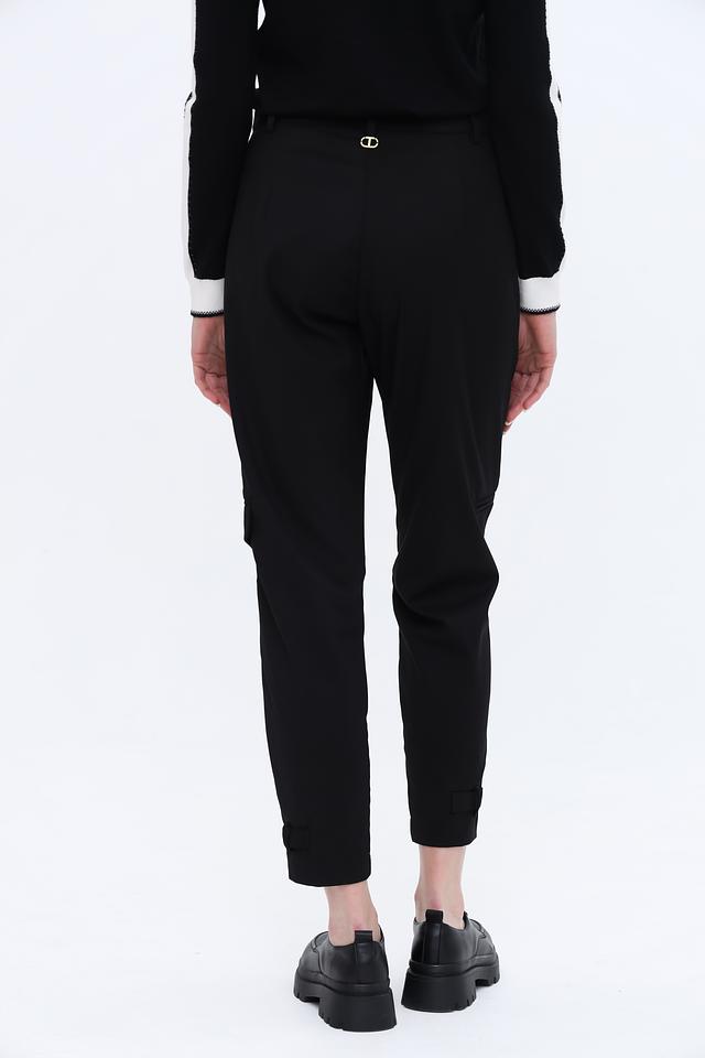 Чёрные брюки карго от Twin Set — стильное и удобное решение для повседневного гардероба. Модель выполнена из качественного сочетания полиэстера, вискозы и эластана, обеспечивающего комфорт и свободу движений. Состав: полиэстер 63%, вискоза 34%, эластан 3%
